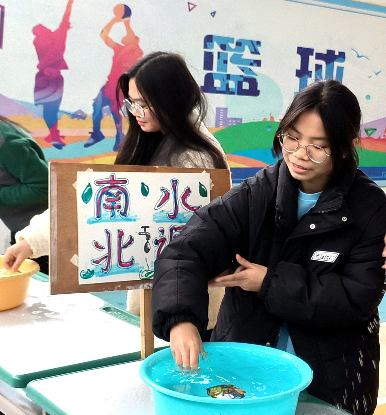 参赛者利用水杯,把大盆子里的水运送到对面的小矿水瓶中,完成者则会得到相应的奖品。