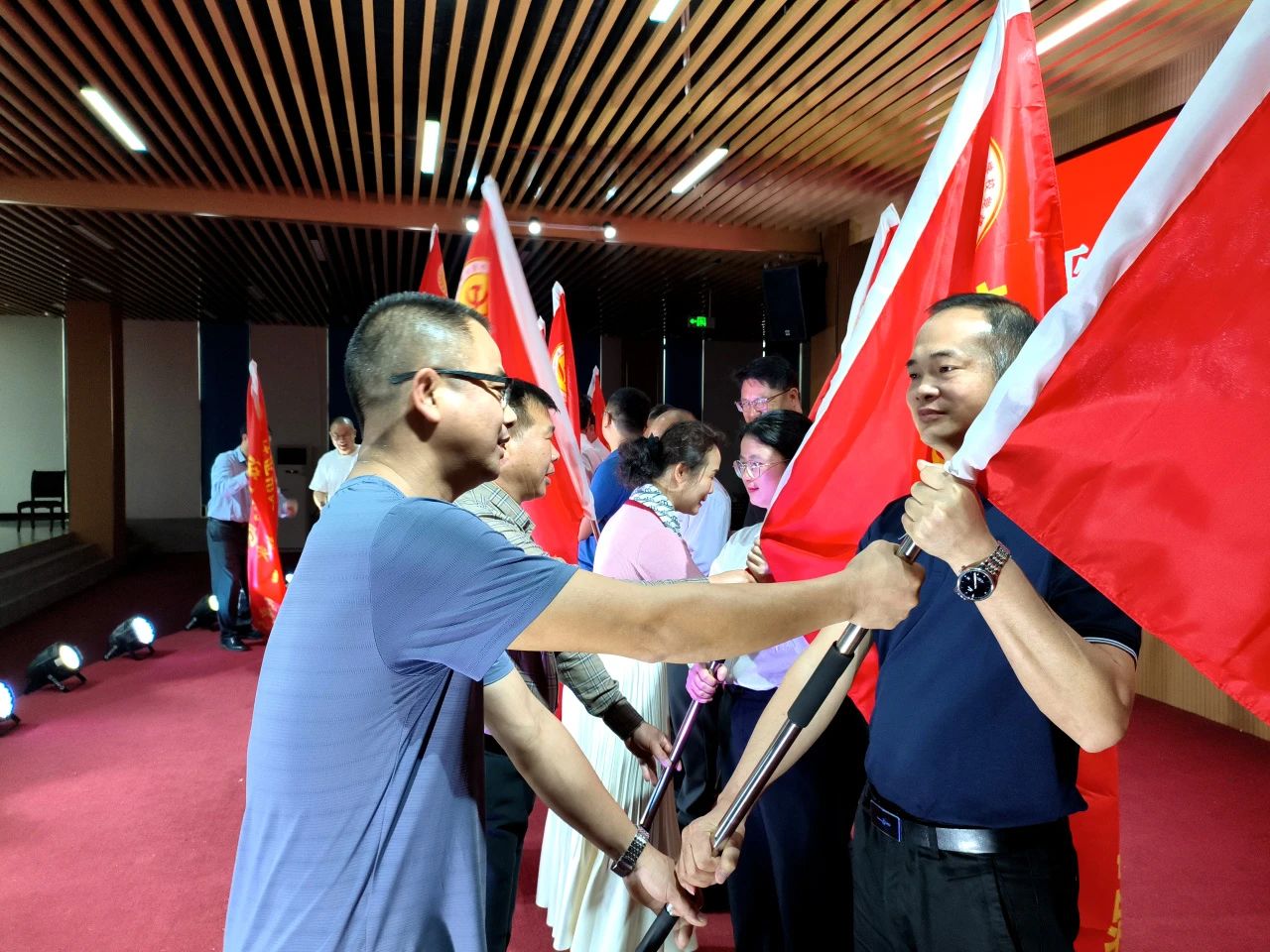 图↑ 由桂平市艺术学校党支部移交盟旗给兴桂中学党支部,下次主题党日活动由兴桂中学党支部书记杨小军主持。
