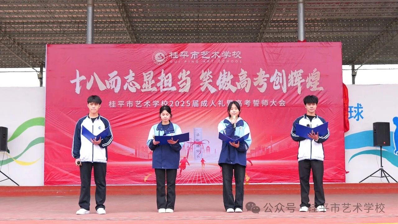 十八而至,青春正好;誓言铮铮,扬帆远航。4月3日,桂平市艺术学校隆重举行2025届学子成人礼暨誓师大会,全体师生、三年级学生家长代表齐聚一堂,共同见证这一庄严而充满激情的时刻。