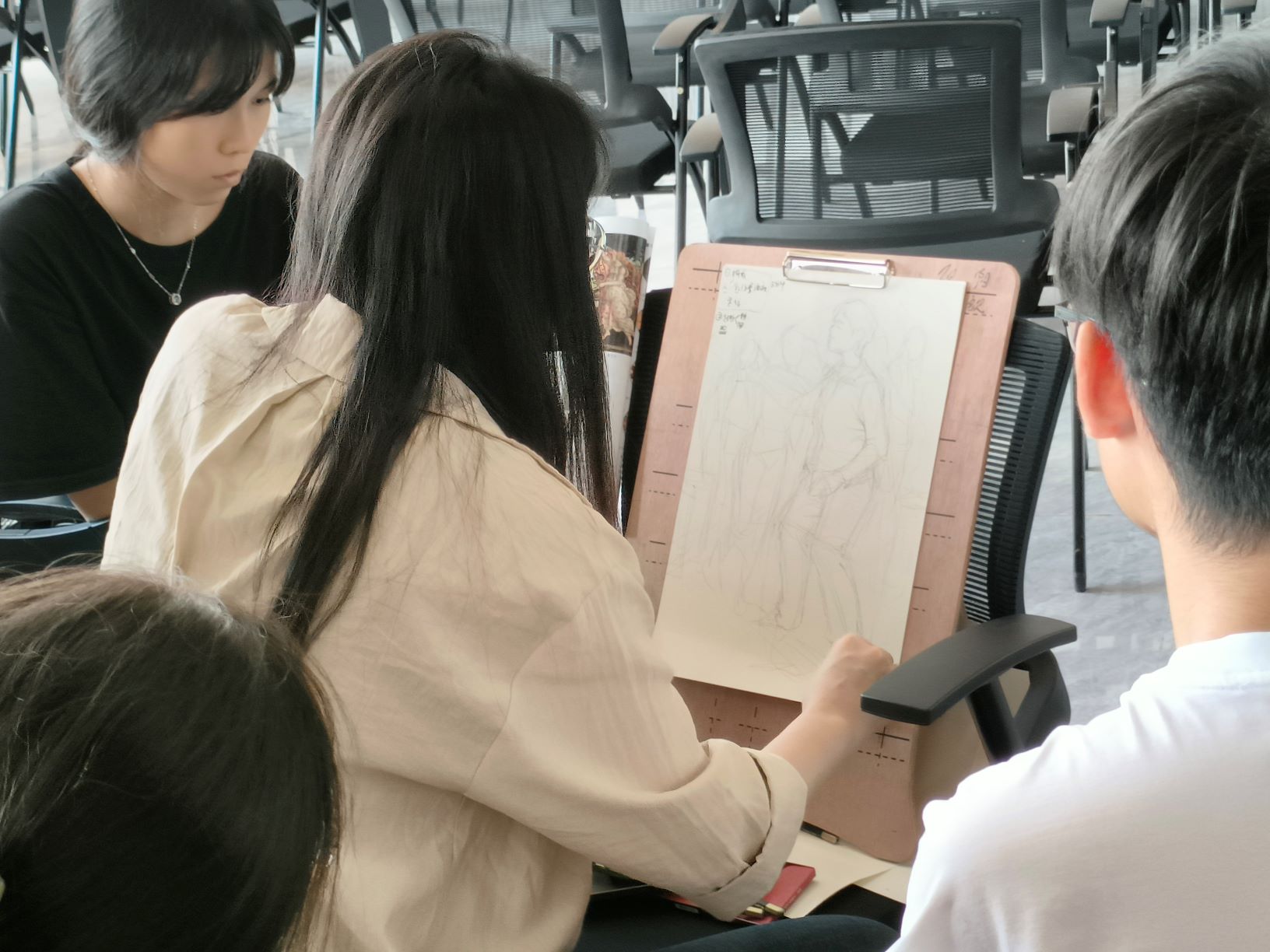 苏环老师跟同学们分享画速写的经验,建议同学们课外时间多了解中国艺术、西方艺术。苏环老师表示美术鉴赏可以帮助提高自己的眼界,同学们也可以根据书本里的图进行二次创作速写。