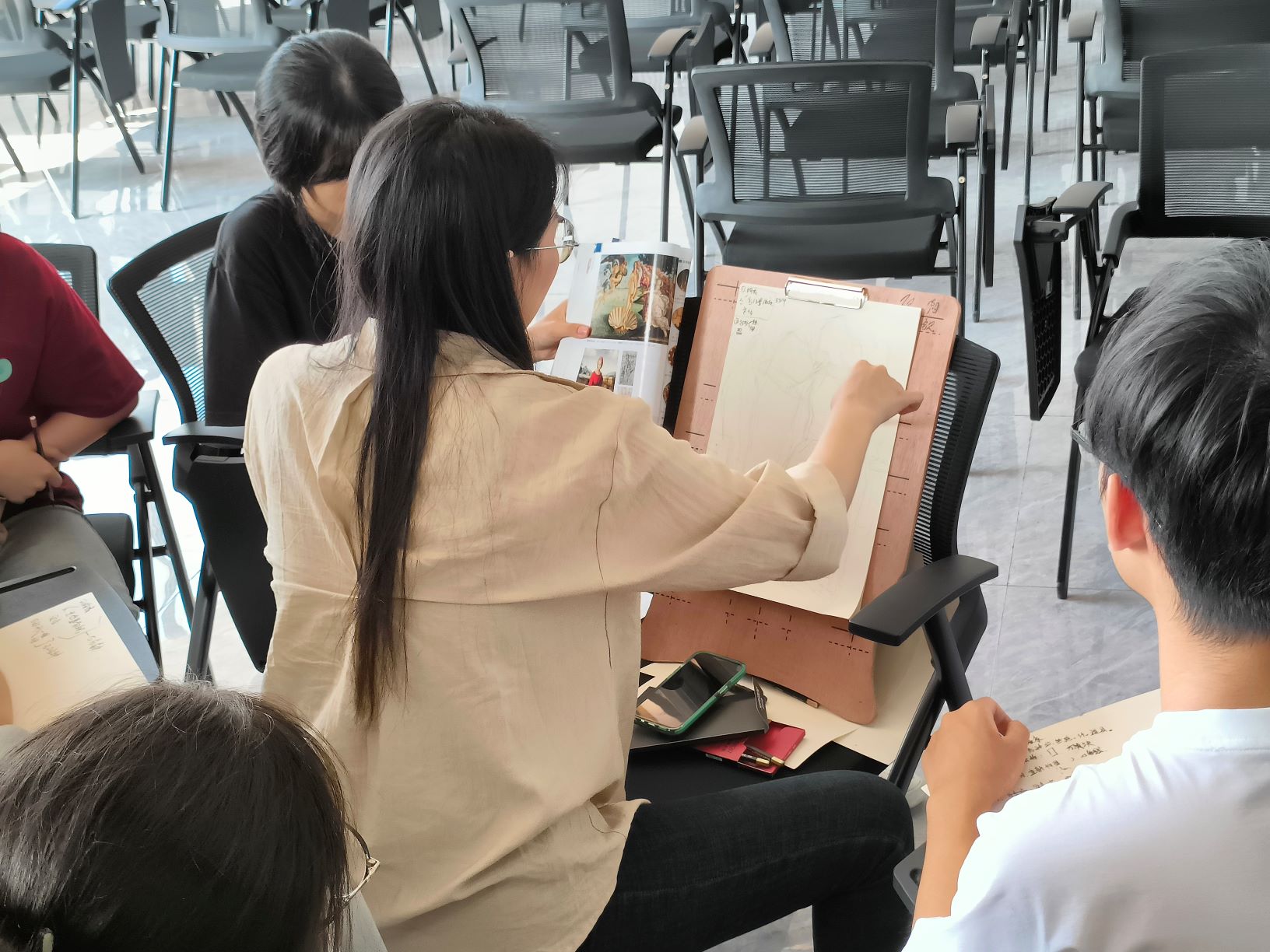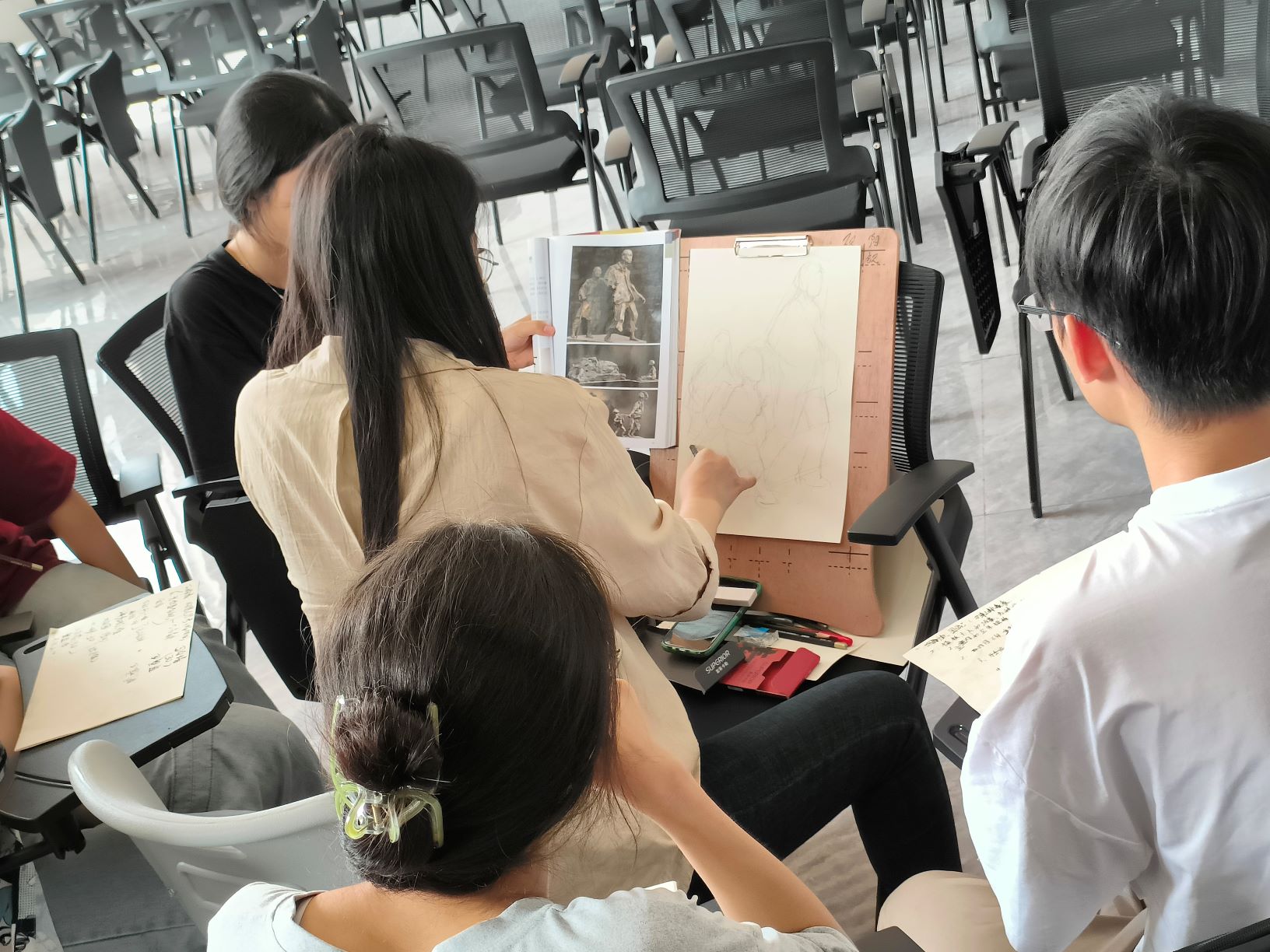 苏环老师一边示范一边讲解审题方法、画速写的步骤、评分标准等知识点,同学们认真听讲、做笔记,在苏环老师示范的同时,同学们也跟着画,做到活学活用,把课堂上的知识点记住,及时复习。
