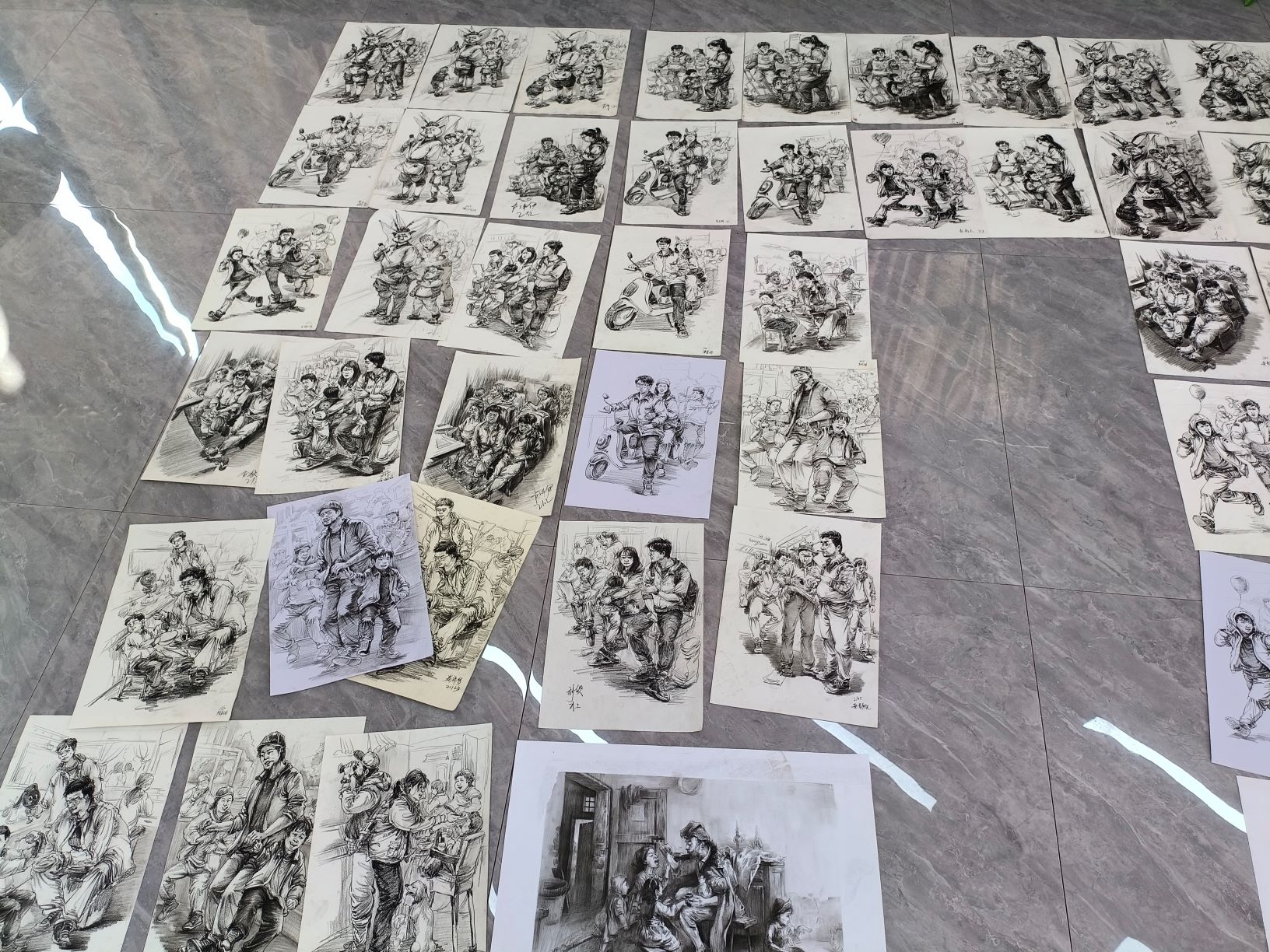 苏环老师在示范速写前强调画面人物关系的安排,同学们平时练习的时候就要有意识的多记住人物的表情、发型、服装、动态以及场景的物品等。苏环老师强调同学们要做好准备上考场,考试时临时创作、临时发挥风险较高。