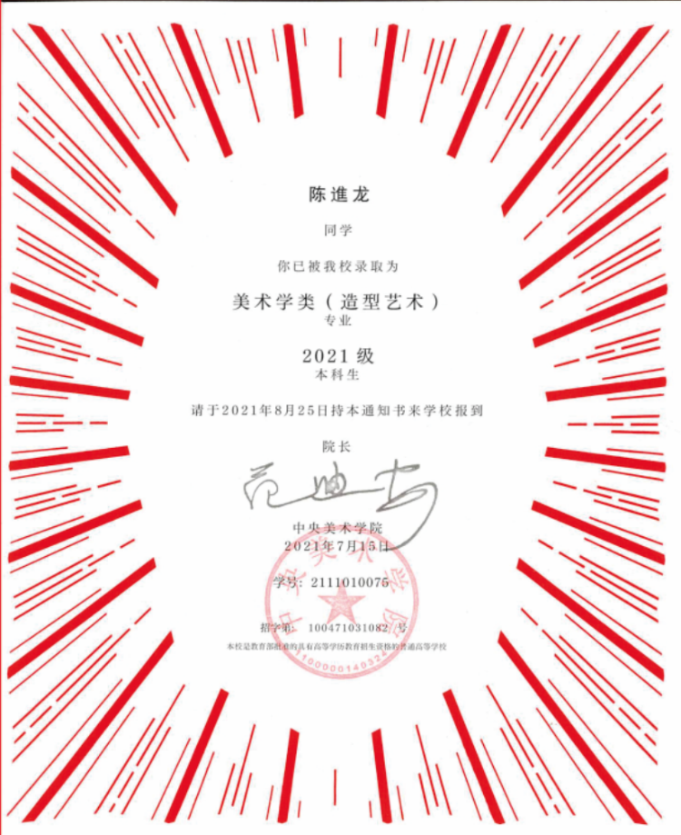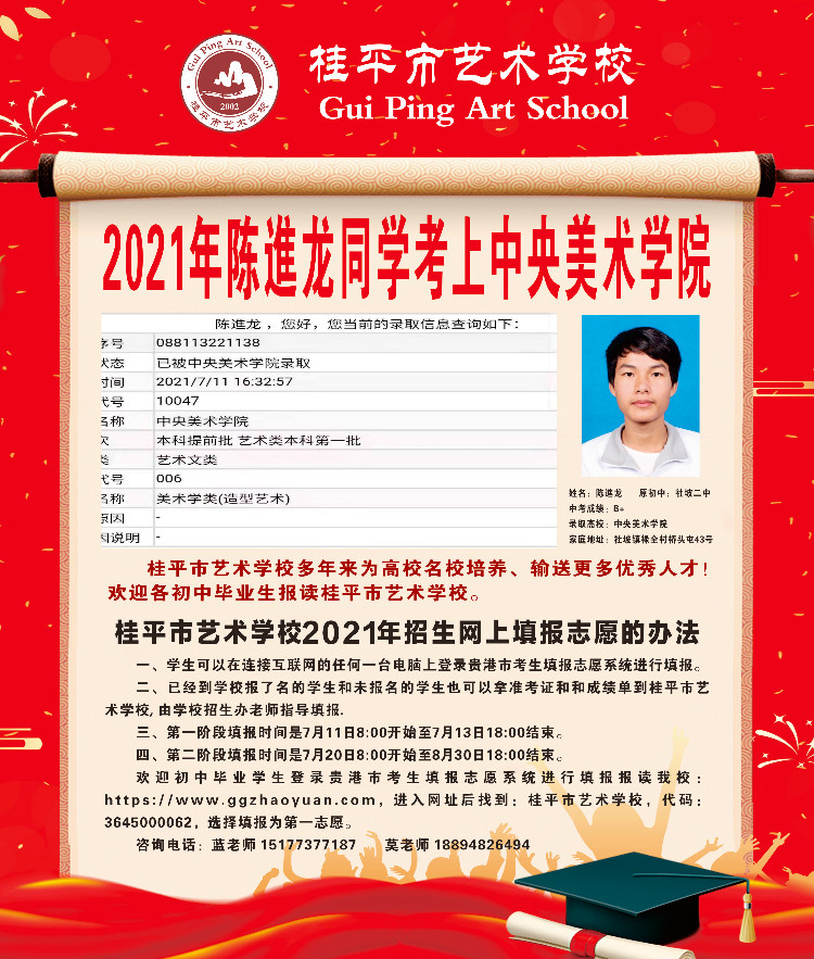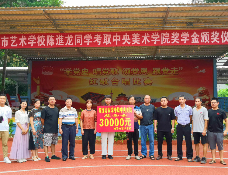 桂平市艺术学校陈進龙同学考取中央美术学院奖学金颁奖仪式