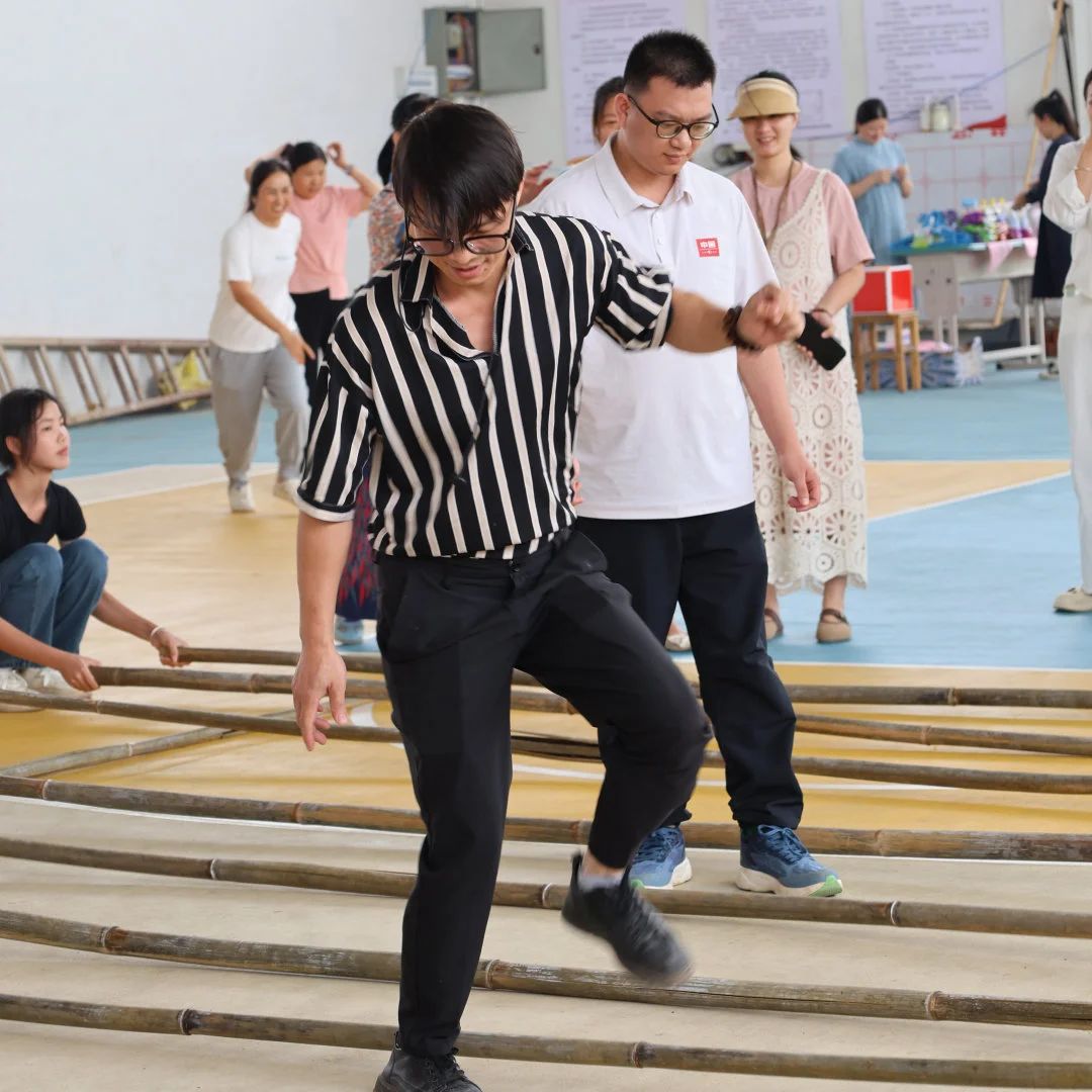 现场设置跳竹竿舞、踩高跷、抢凳子、三人足、扔飞盘5个游园游戏,游戏挑战成功便可得到一定的奖品。