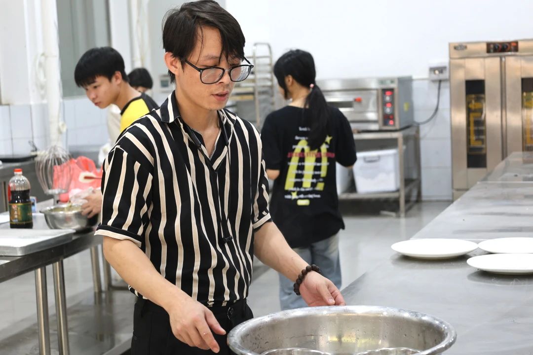 ?图/美食节在学校烹饪实训室,不同口味爆米花、各式糕点等特色美食均由各班级档口精心制作。师生们边品尝美食,边玩有趣的游戏?;疃殖?,每个人脸上都洋溢着幸福的笑容