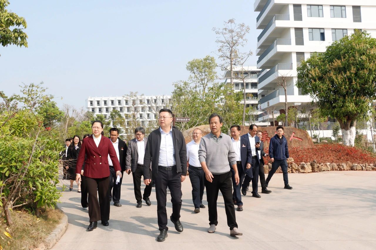 调研组一行在校领导的陪同下,先后走访了教学楼、实训基地、报告厅及校园图书室。创始人、校长陈嘉诚结合学校“以美育人”的办学理念,详细介绍了校园规划布局、绿化景观建设及智慧校园设施。来访人员对学校“花园式”育人环境表示高度赞赏,尤其对融入本土文化的景观设计频频驻足观赏。